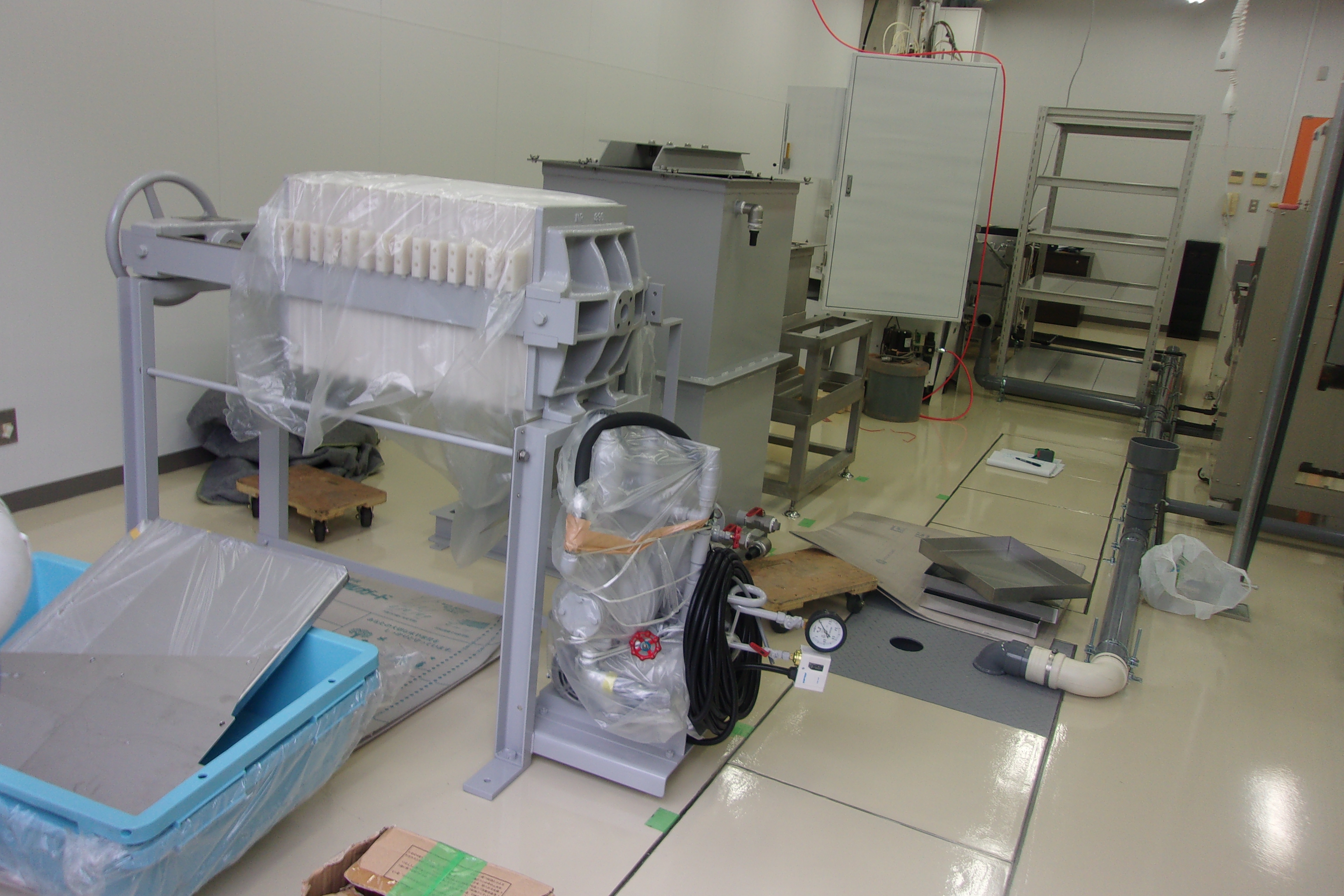 京都府T社様に研磨排水処理装置を2ユニット納入しました 2024/01/10 ニュース 研磨関係の研究施設用排水処理システムの納入です コンパクトな設計を心掛けました 小型フィルタープレスですと、殆ど騒音は無いのでこういう施設には向いています こちらはpHの中和処理が必要なアルカリタイプの研磨排水処理です(後ろに薬液タンクが見えます) こちらはpH処理が必要無いタイプの処理装置です