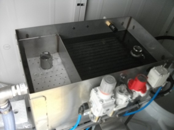 静岡県N社に油膜検知+油膜回収(パットル型)を納入しました 2017/05/27 導入実績 LMD-3000という油膜検知器です、この下が排水路になており、24時間油膜を監視しています 油膜検知器の周辺です。手前右が油膜回収ユニット収納庫です。 油膜検知器が油膜を検知するとこの制御盤が信号を受け取り、横のパットルが起動します。 今回パットル180Rを採用、返送水にオイルマットを経由して、排水路に返します。 収納した状態です。